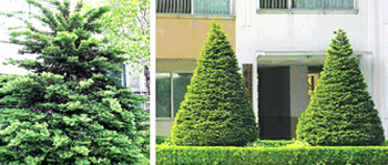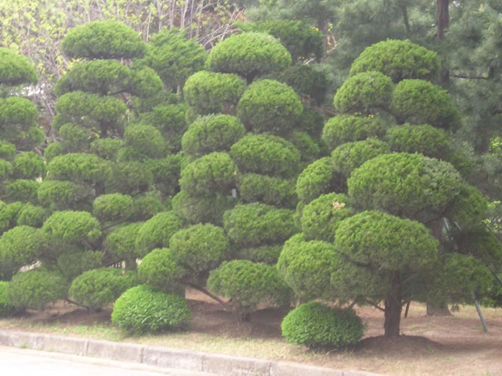 - 상록성 침엽수 : 상록성 활엽수와 같은 방법으로 전정하되 먼저 수형의 형태미를 결정하고 그 형태대로 가지를 전정해 주면 된다. (향나무, 주목, 개비자나무 등)