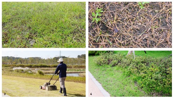 잔디 깎기는 잔디의 지상부를 2~3cm 정도 남기고 예초하며 부산물은 즉시 제거한다.